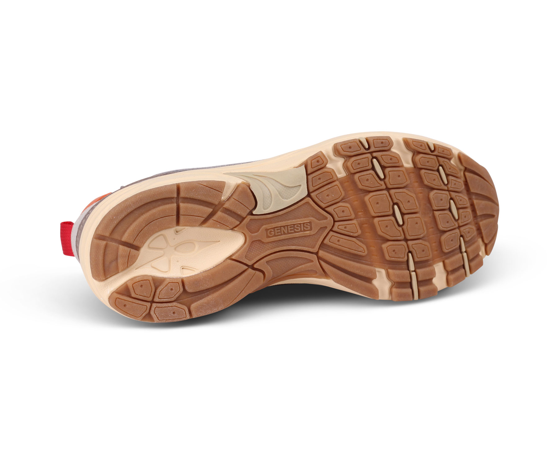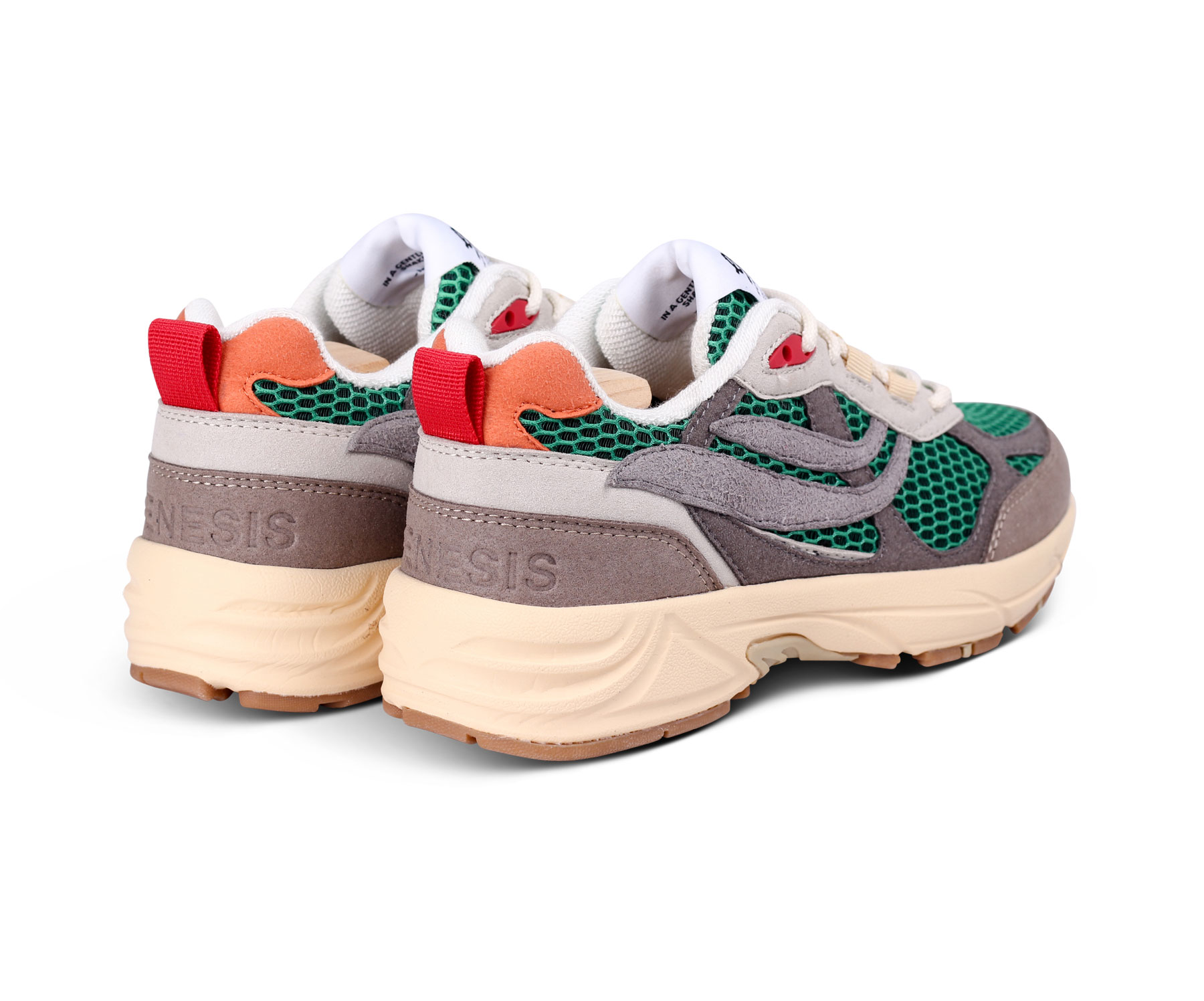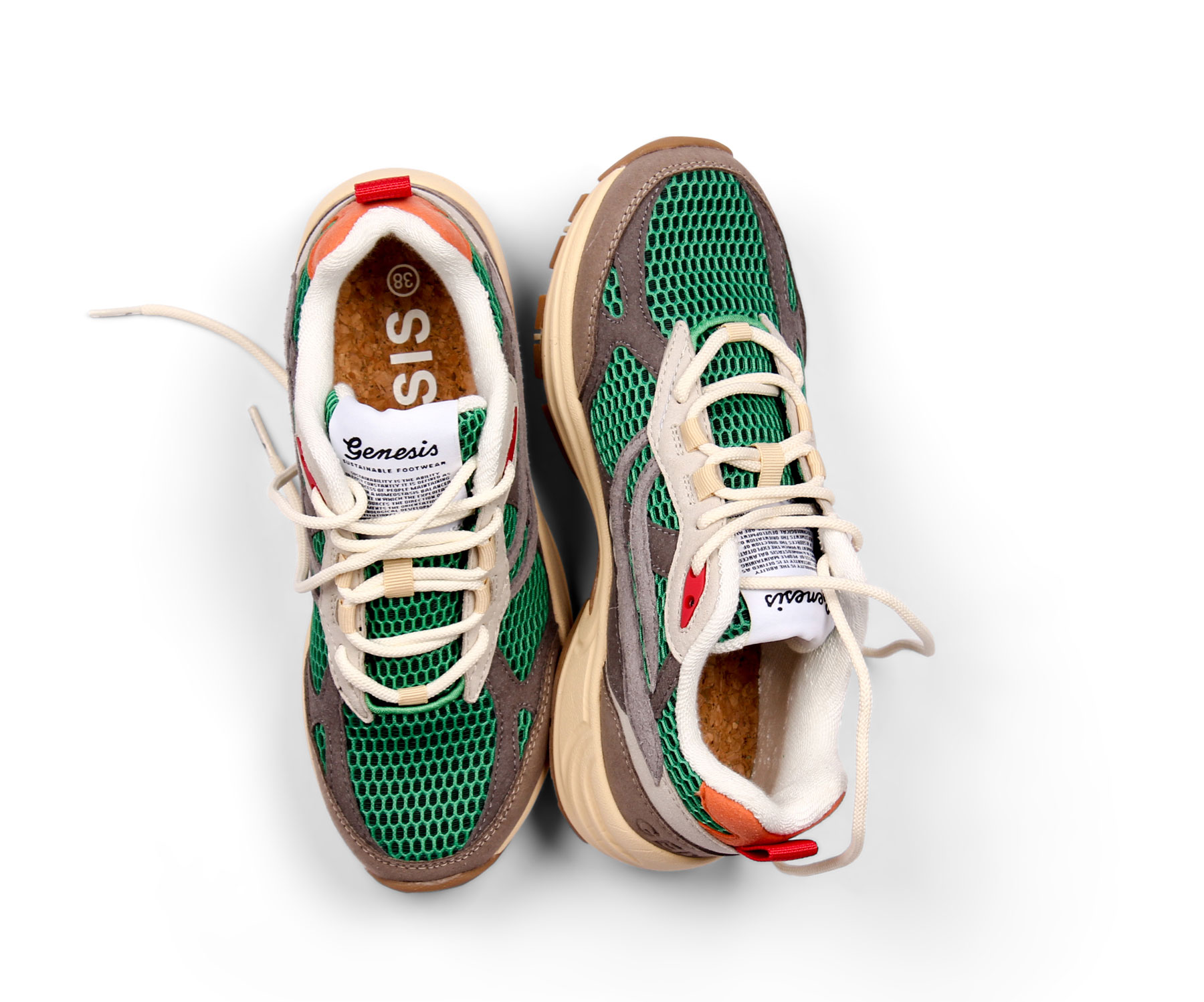 Beim G-ECO’99 Contra setzen wir auf innovative, ressourcenschonende Materialien wie veganes Leder aus Maisabfällen und CONTRA MESH – ein robustes Mesh-Gewebe aus 100 % recycelten PET-Flaschen. Die Innensohle mit unserer Cork’in™ Technologie kombiniert recycelten PU- Schaum mit FSC-zertifiziertem Kork und sorgt für natürlichen Tragekomfort und Atmungsaktivität.