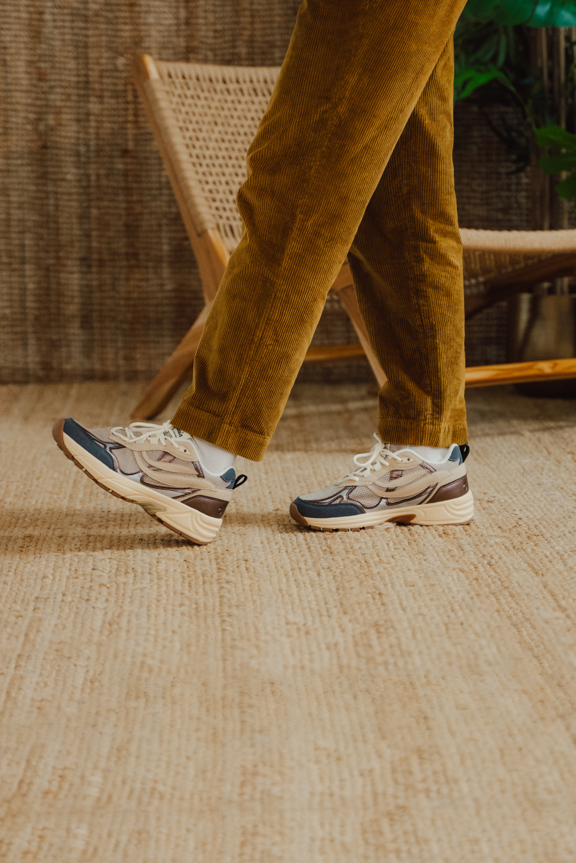 Das Innenfutter besteht aus einer nachhaltigen Mischung aus Bambusfasern und recyceltem PET und bietet ein angenehm weiches Tragegefühl. Schnürsenkel und Nähte sind komplett aus recycelten PET-Flaschen gefertigt und unterstreichen den durchdachten, nachhaltigen Aufbau. Die Außensohle besteht zu mindestens 40 % aus Naturkautschuk aus zertifiziert nachhaltigem Anbau und zu 10 % aus recyceltem PET – für Flexibilität und Halt auf jedem Untergrund.