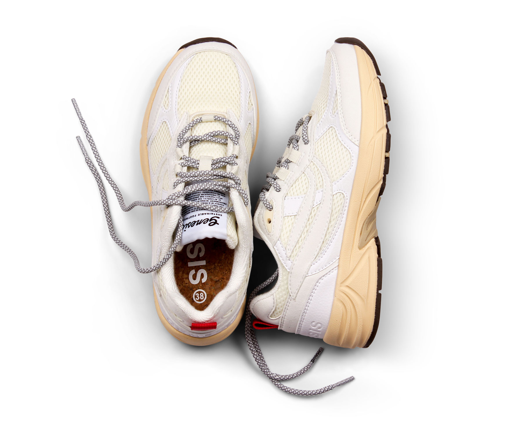 Schnürsenkel und Nähte bestehen vollständig aus recycelten PET-Flaschen, während die Außensohle aus Naturkautschuk und recyceltem PET Flexibilität und Langlebigkeit gewährleistet.
