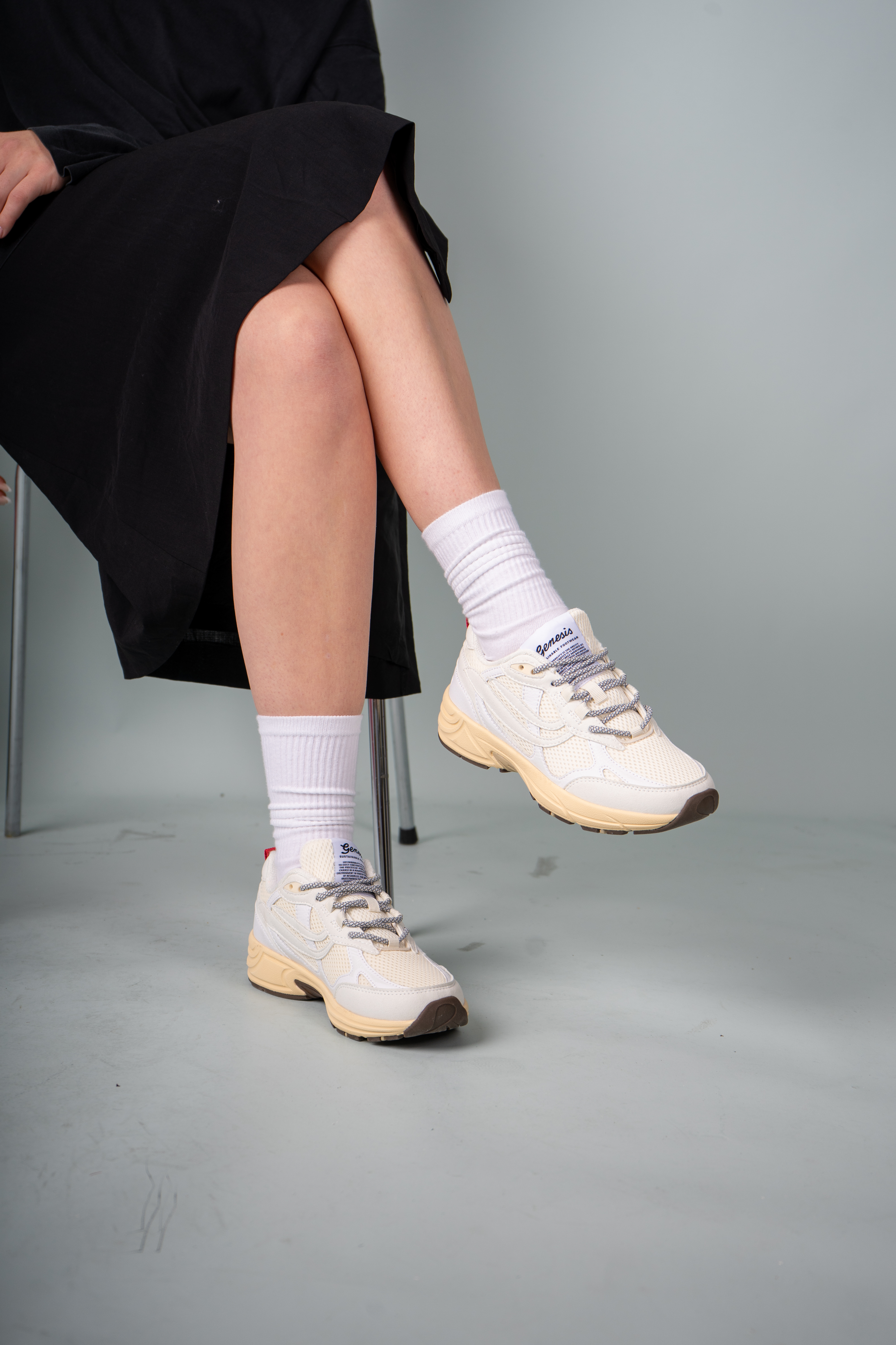 Der G-ECO’99 Mono Mix kombiniert minimalistisches Design mit innovativen, nachhaltigen Materialien. Das Obermaterial besteht aus Cornwaste, einem veganen Leder auf Basis von Maisabfällen, ergänzt durch atmungsaktives Mesh aus 100 % recycelten PET-Flaschen. Diese Kombination sorgt für eine klare Optik, hohe Strapazierfähigkeit und ein leichtes Tragegefühl.