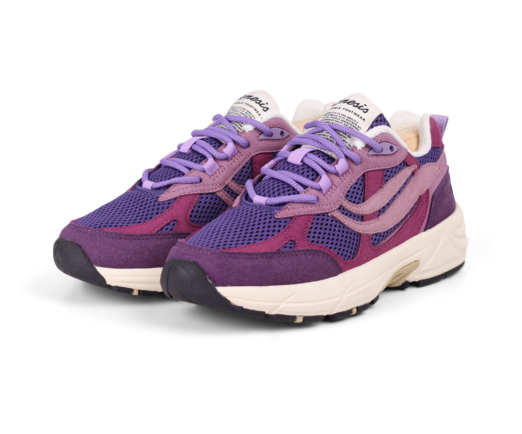Obermaterial & Logo: BIOWAVE™ und Sugar Cane – veganes Veloursleder aus Zuckerrohr + recyceltem PET