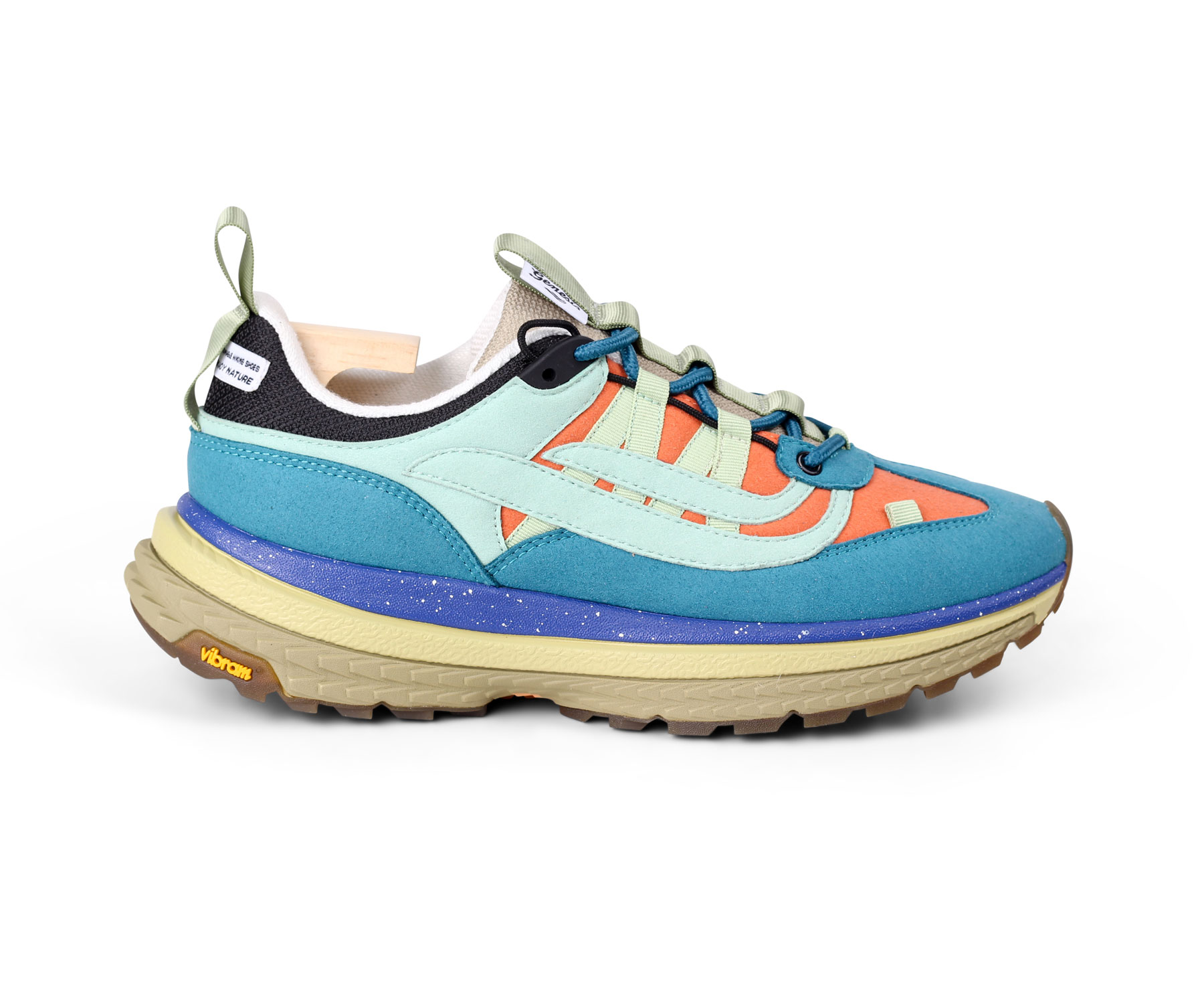 Für das Innenfutter verwenden wir REWAVE™, eine nachhaltige Mischung aus Bambusfasern und recyceltem PET, die für ein angenehmes Fußklima sorgt. Auch die Schnürsenkel und Nähte bestehen zu 100% aus recycelten PET-Flaschen.