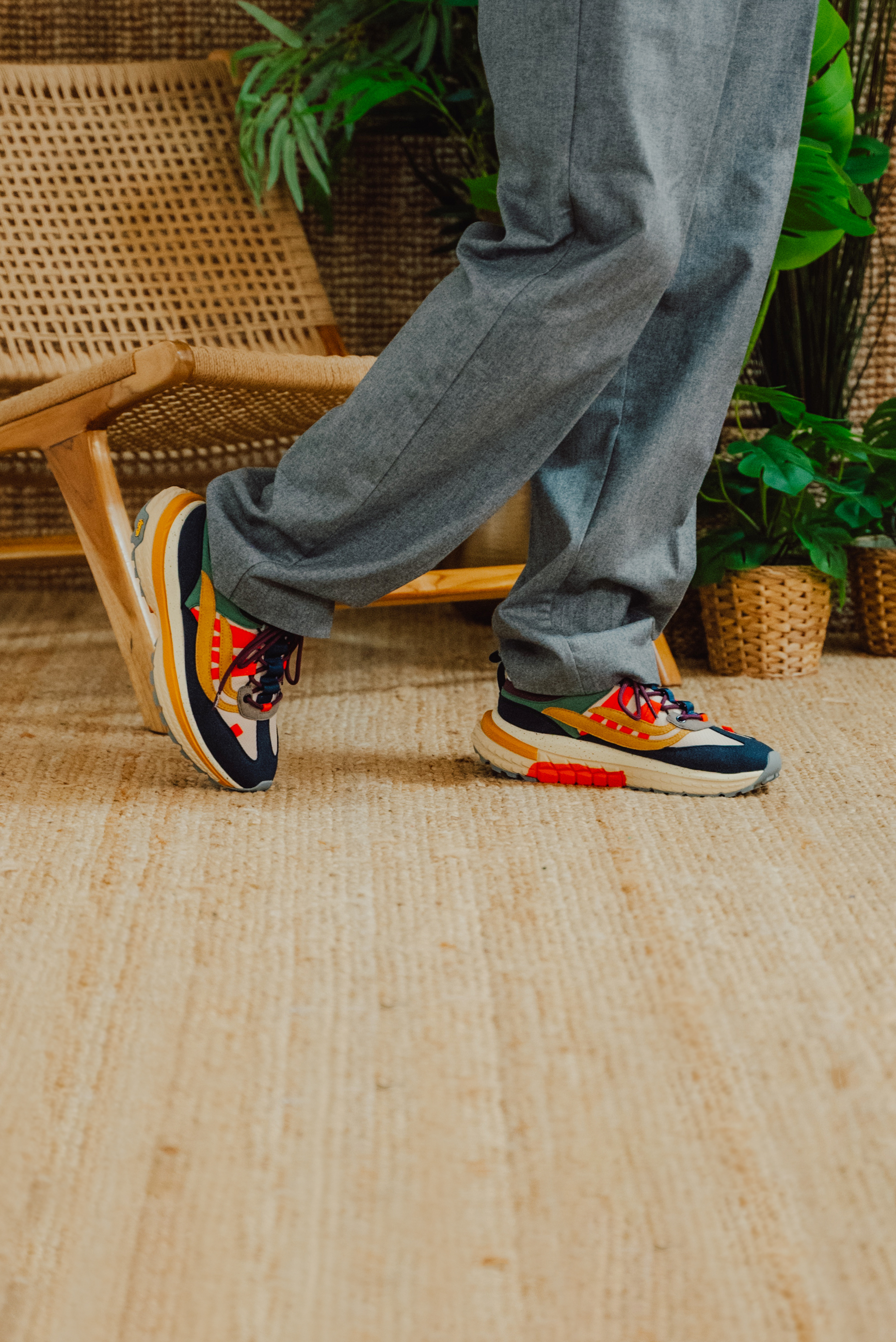 Für das Innenfutter verwenden wir REWAVE™, eine nachhaltige Mischung aus Bambusfasern und recyceltem PET, die für ein angenehmes Fußklima sorgt. Auch die Schnürsenkel und Nähte bestehen zu 100% aus recycelten PET-Flaschen.