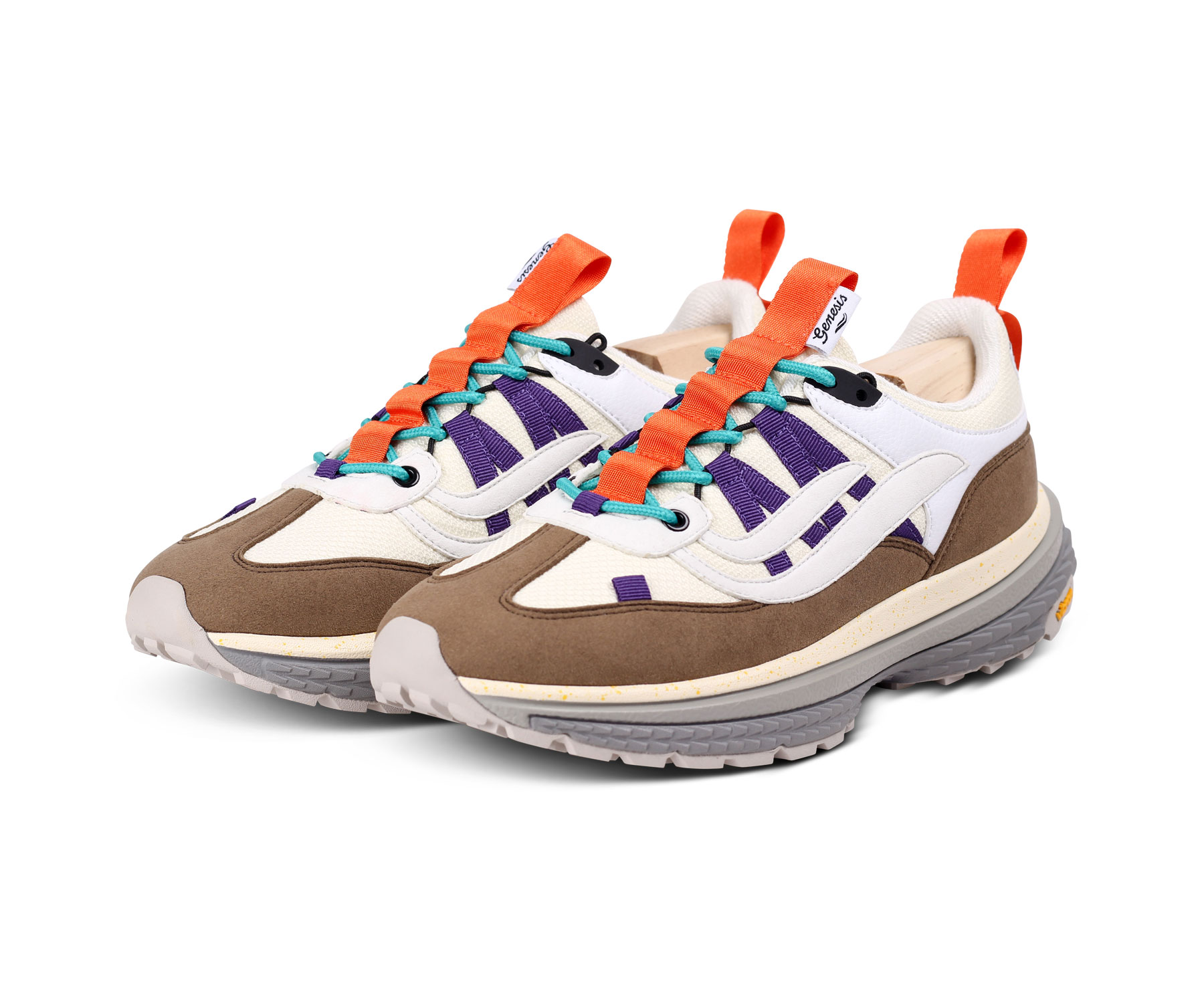 Der G-Machu Cornwaste vereint Funktionalität und Nachhaltigkeit in einem modernen Outdoor-inspirierten Design. Das Obermaterial aus Cornwaste, einem veganen Veloursleder auf Basis von Maisabfällen, wird durch atmungsaktives Mesh aus 100 % recycelten PET-Flaschen ergänzt – für Robustheit, Leichtigkeit und optimale Belüftung.
