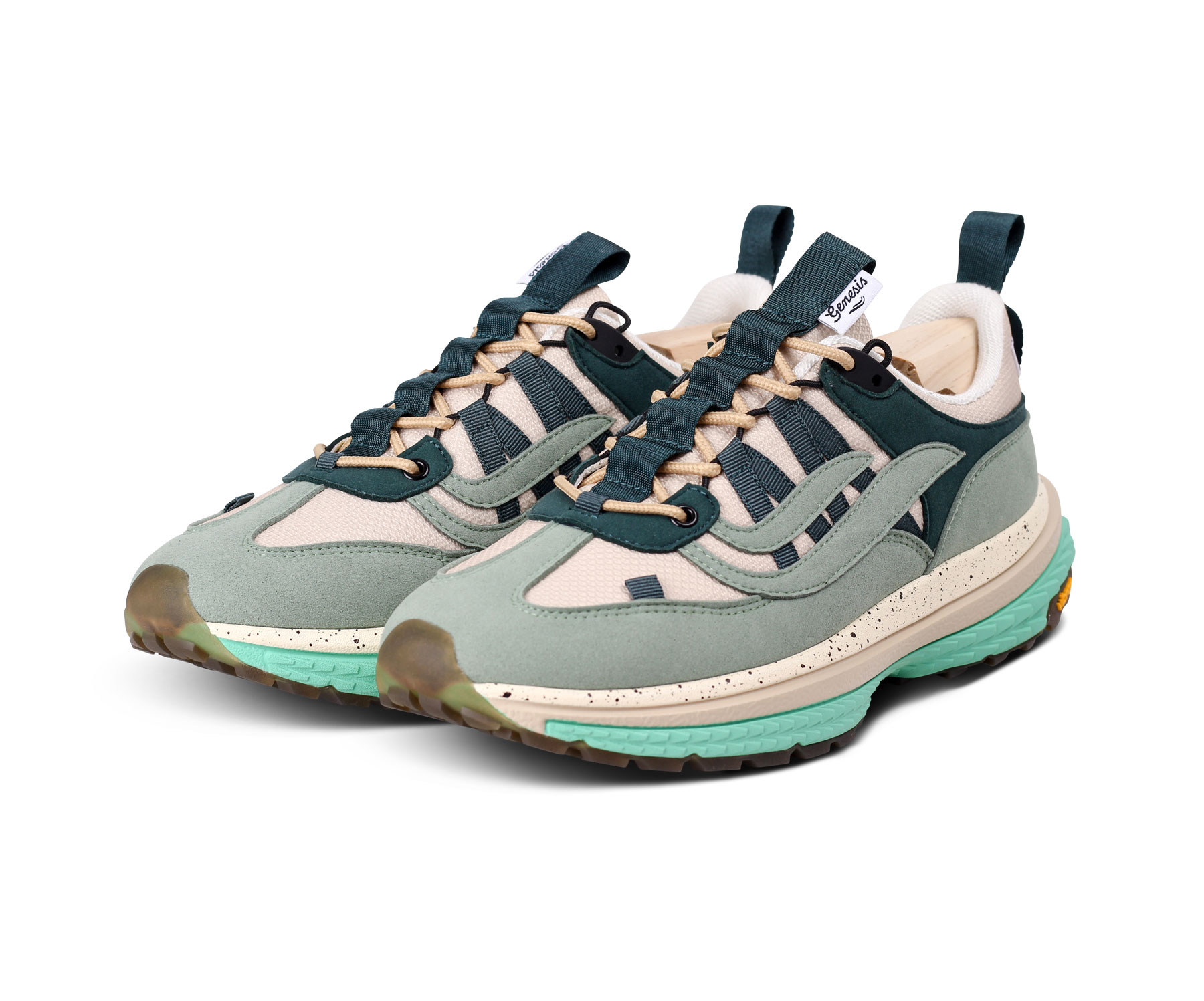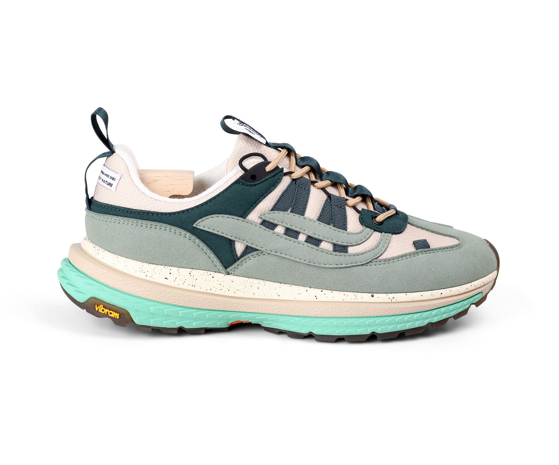 Schnürsenkel und Nähte bestehen vollständig aus recycelten PET-Flaschen. Die hochwertige Vibram®-Sohle bietet zuverlässige Bodenhaftung, Stabilität und Langlebigkeit – ideal für den Alltag und leichte Outdoor-Aktivitäten.