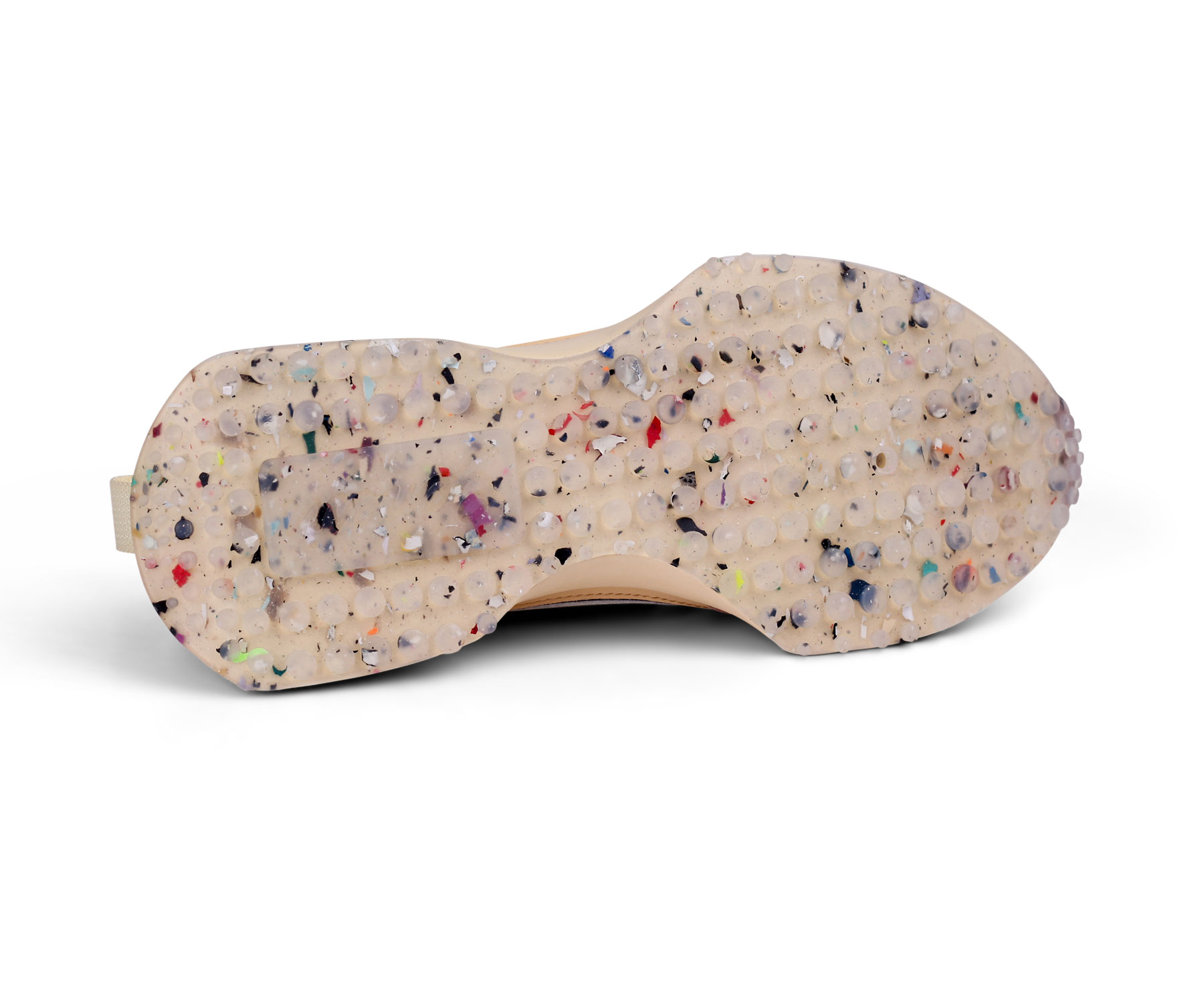 Das atmungsaktive Mesh besteht vollständig aus recycelten PET-Flaschen. Für das Innenfutter verwenden wir unser REWAVE™ Material aus Bambusfasern und recyceltem PET – weich, funktional und umweltfreundlich zugleich. Die strapazierfähige Außensohle besteht aus mindestens 40% nachhaltigem Naturkautschuk und 10% recyceltem PET.