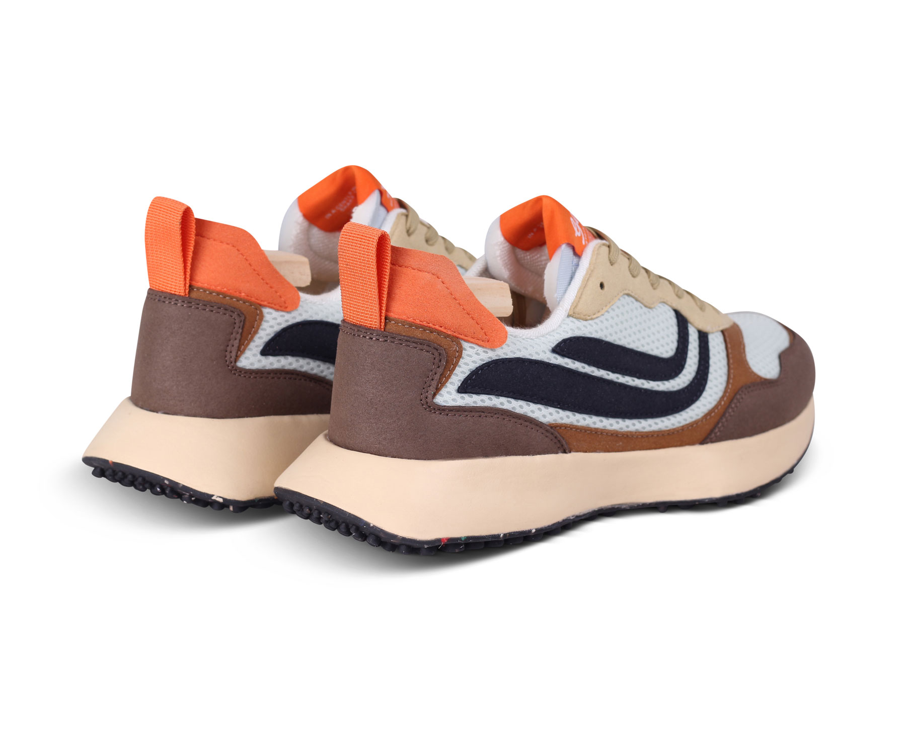 Für unseren G-Marathon Multi Mesh setzen wir auf eine Kombination aus BIOWAVE™ Cornwaste – einem veganen Leder aus Maisabfällen – und Sugar Cane Veloursleder, das aus recyceltem PET sowie Maisresten besteht. Die Cork’in™ Einlegesohlen aus recyceltem PU-Schaum und FSC-zertifiziertem Kork sorgen für angenehmen Tragekomfort bei jedem Schritt.