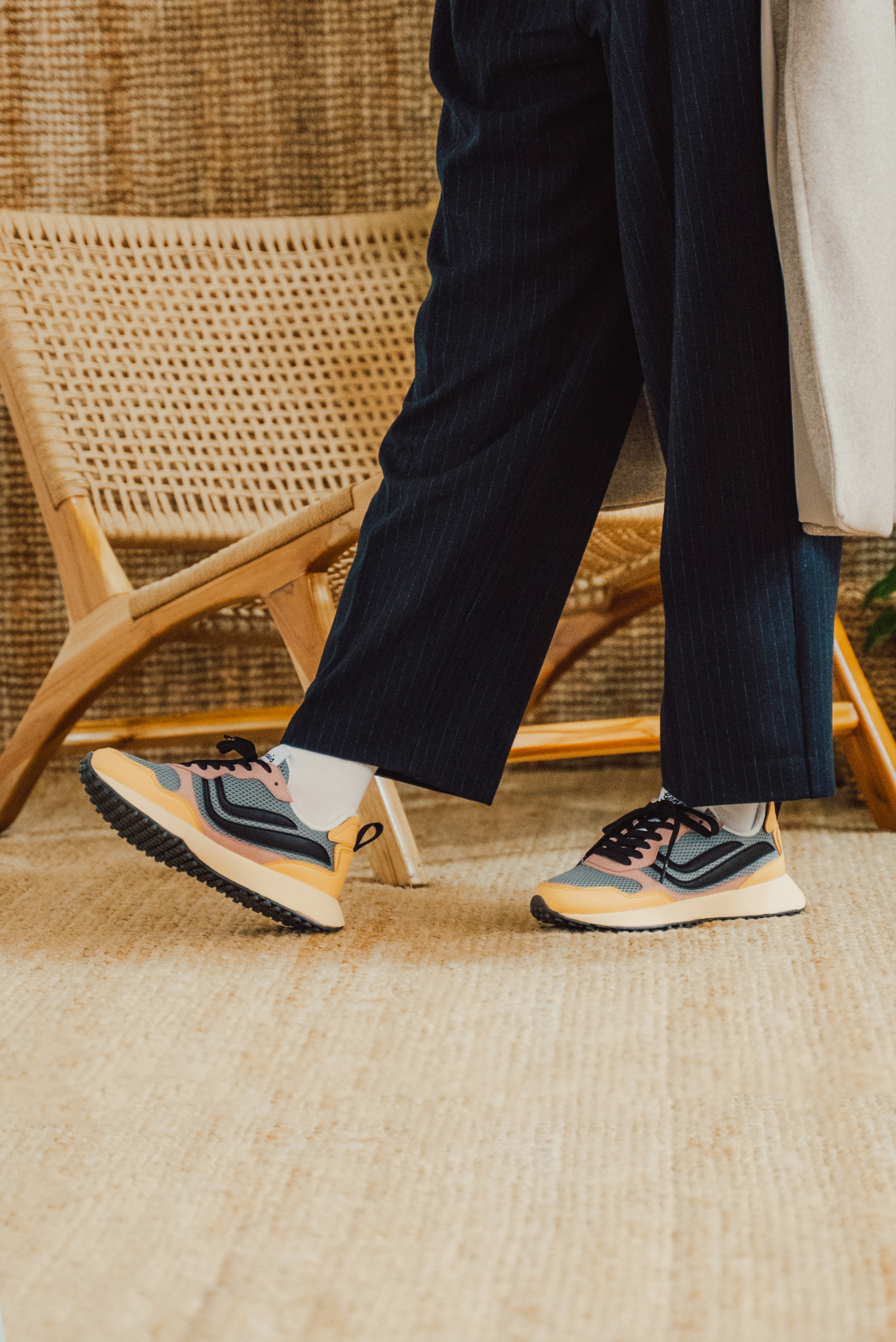 Für unseren G-Marathon Multi Mesh setzen wir auf eine Kombination aus BIOWAVE™ Cornwaste – einem veganen Leder aus Maisabfällen – und Sugar Cane Veloursleder, das aus recyceltem PET sowie Maisresten besteht. Die Cork’in™ Einlegesohlen aus recyceltem PU-Schaum und FSC-zertifiziertem Kork sorgen für angenehmen Tragekomfort bei jedem Schritt.