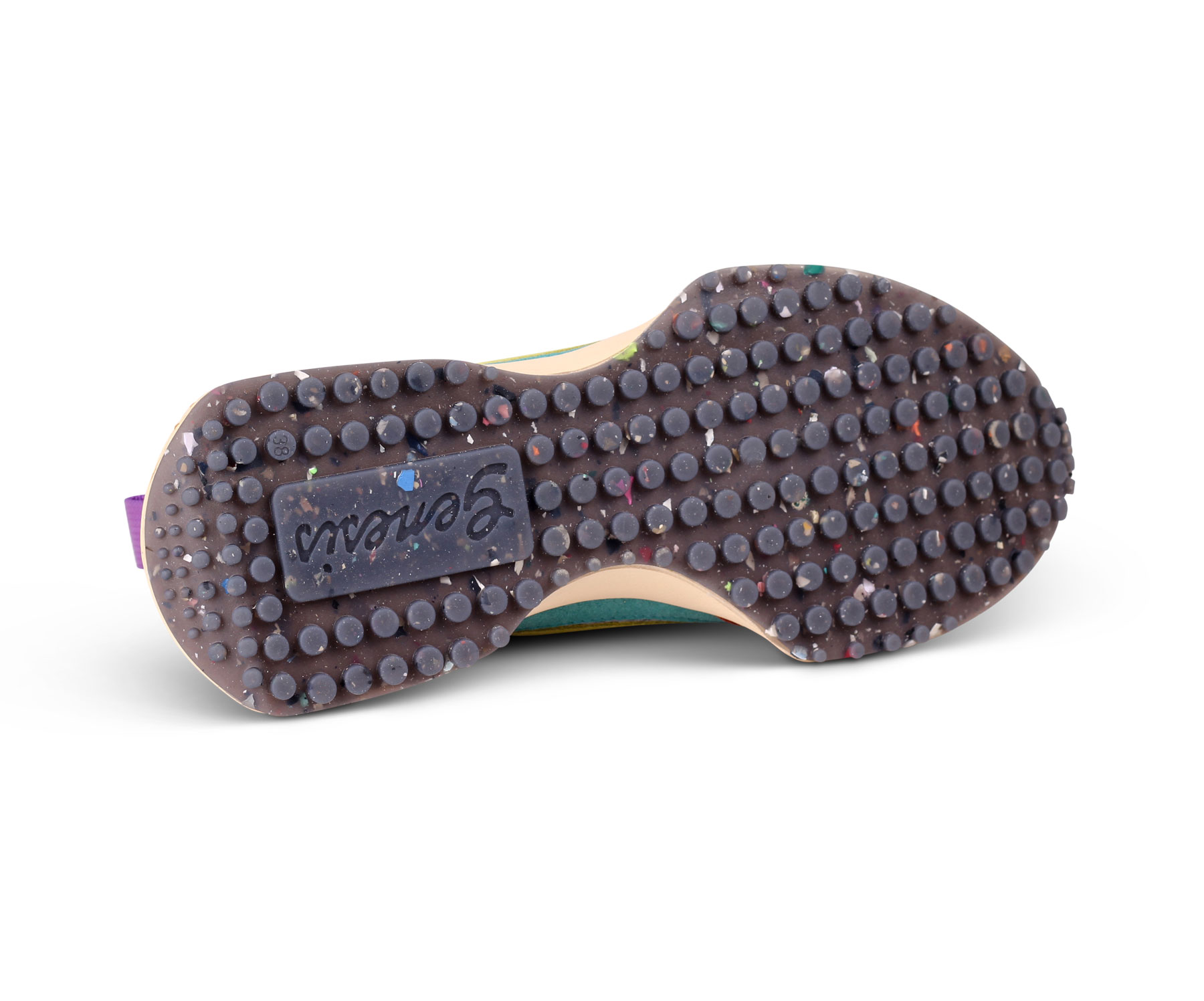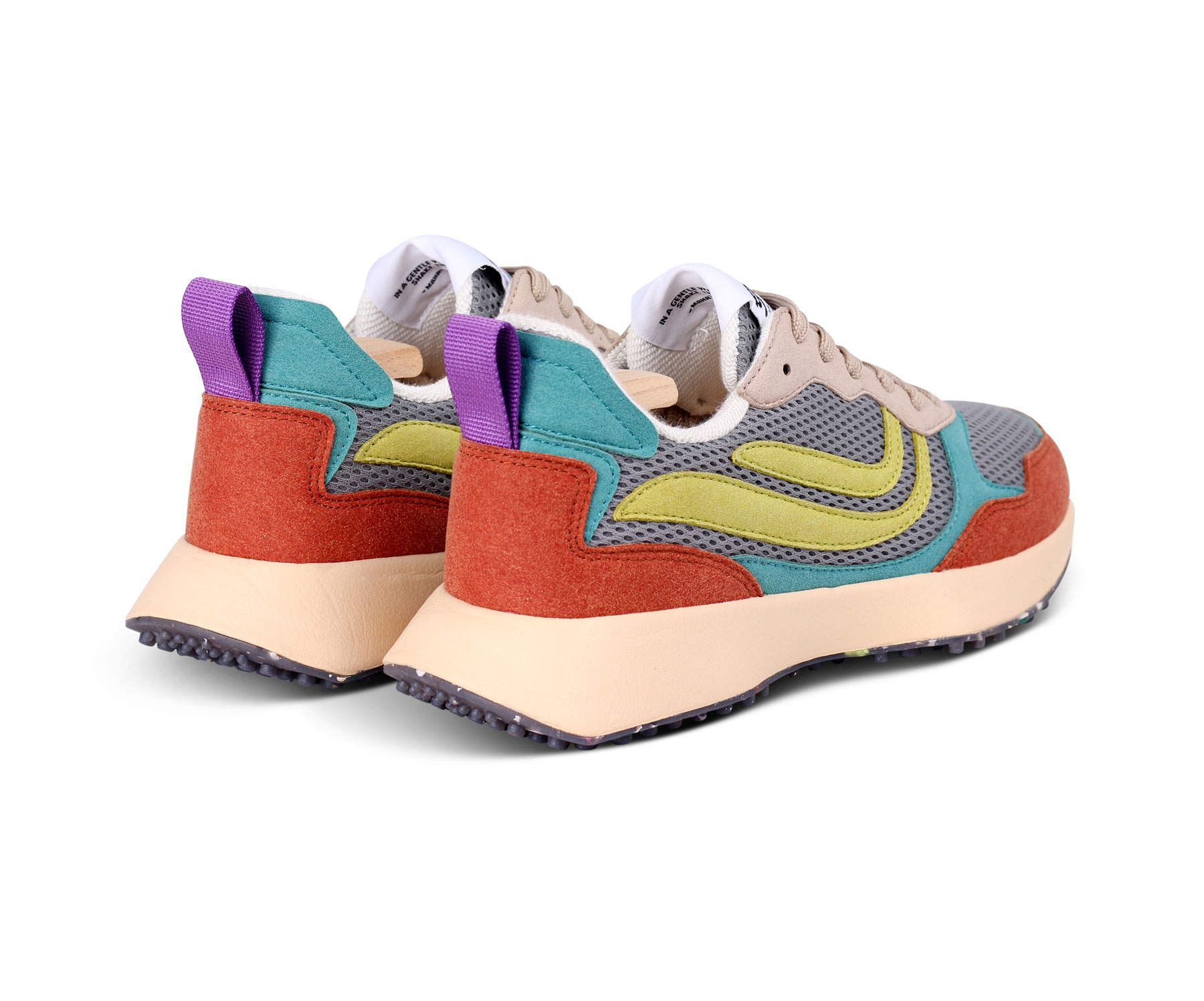 Für unseren G-Marathon Multi Mesh setzen wir auf eine Kombination aus BIOWAVE™ Cornwaste – einem veganen Leder aus Maisabfällen – und Sugar Cane Veloursleder, das aus recyceltem PET sowie Maisresten besteht. Die Cork’in™ Einlegesohlen aus recyceltem PU-Schaum und FSC-zertifiziertem Kork sorgen für angenehmen Tragekomfort bei jedem Schritt.