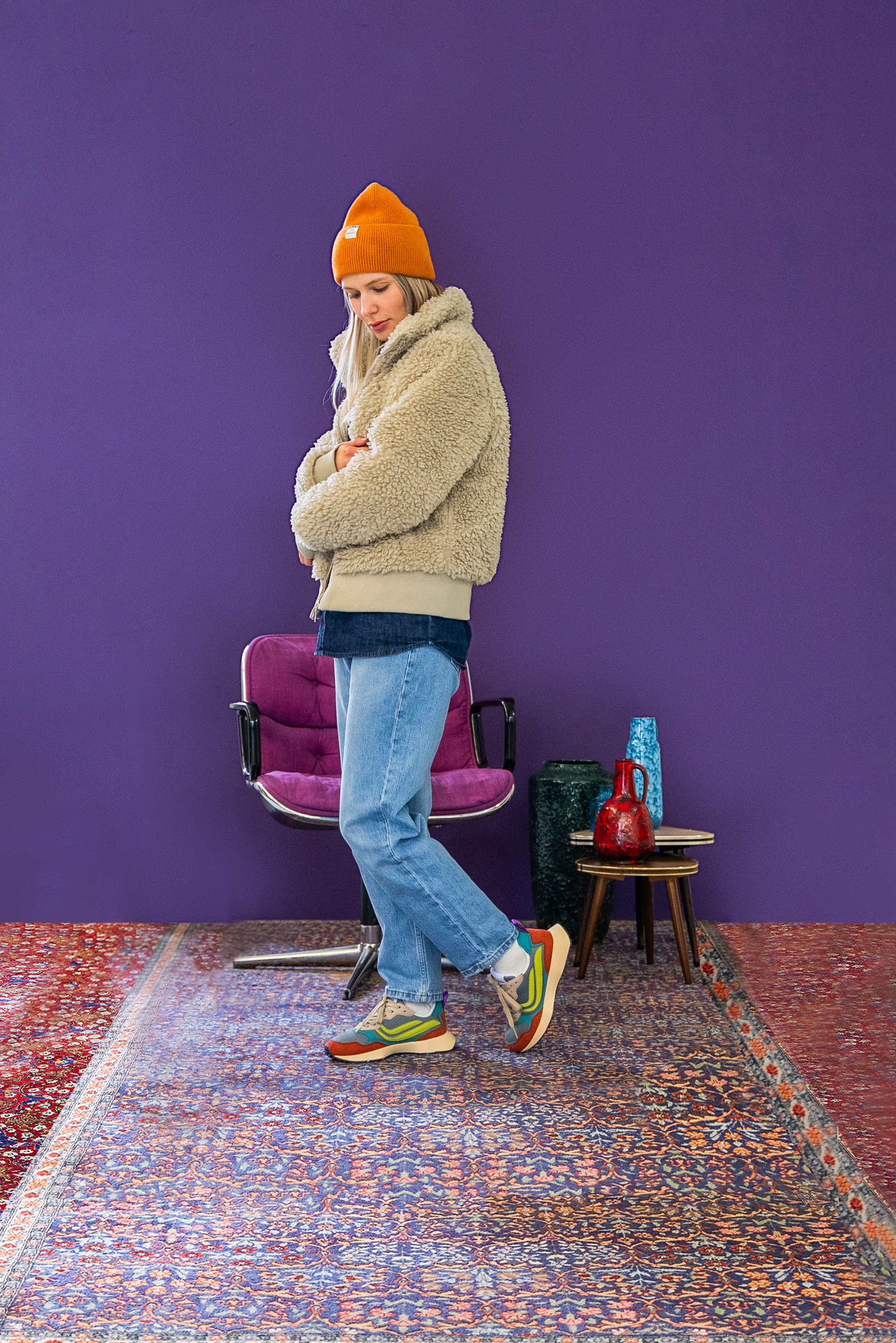 Obermaterial & Logo: BIOWAVE™ Cornwaste – veganes Leder aus Maisabfällen sowie BIOWAVE™ und Sugar Cane – veganes Veloursleder aus Maisabfällen und recyceltem PET