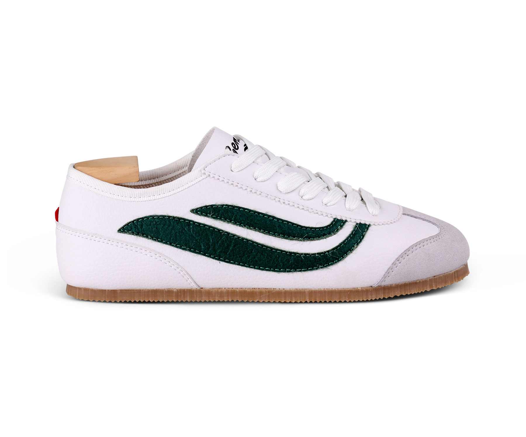 Obermaterial & Logo: Cornwaste und Piñatex® – veganes Veloursleder aus Maisabfällen und künstliches Leder aus Ananasfasern
