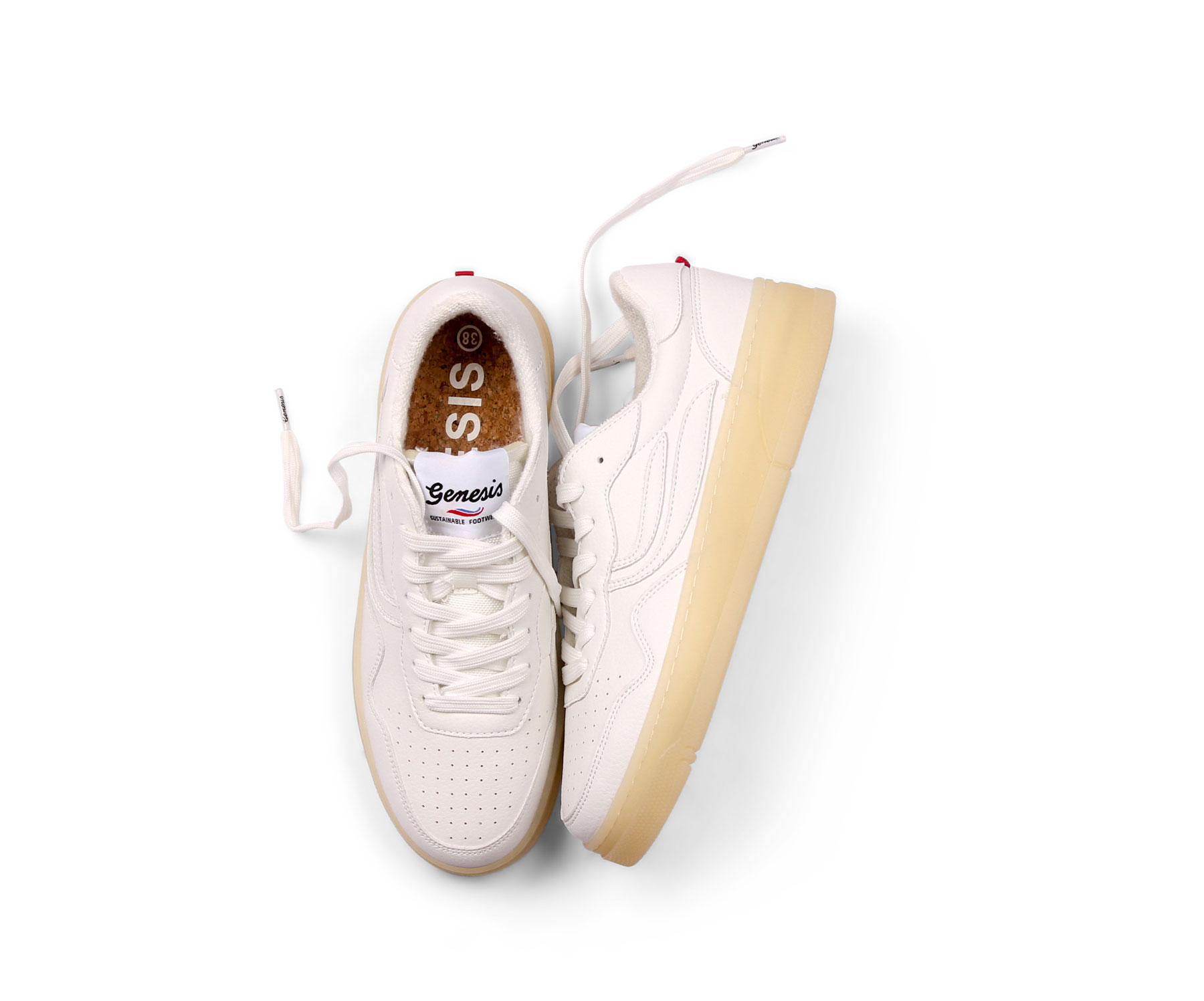 Schnürsenkel und Nähte bestehen vollständig aus recycelten PET-Flaschen. Die Hevea-Naturkautschuksohle sorgt für Flexibilität, Grip und Langlebigkeit – ein nachwachsender Rohstoff, der für seine Elastizität und Umweltfreundlichkeit geschätzt wird.