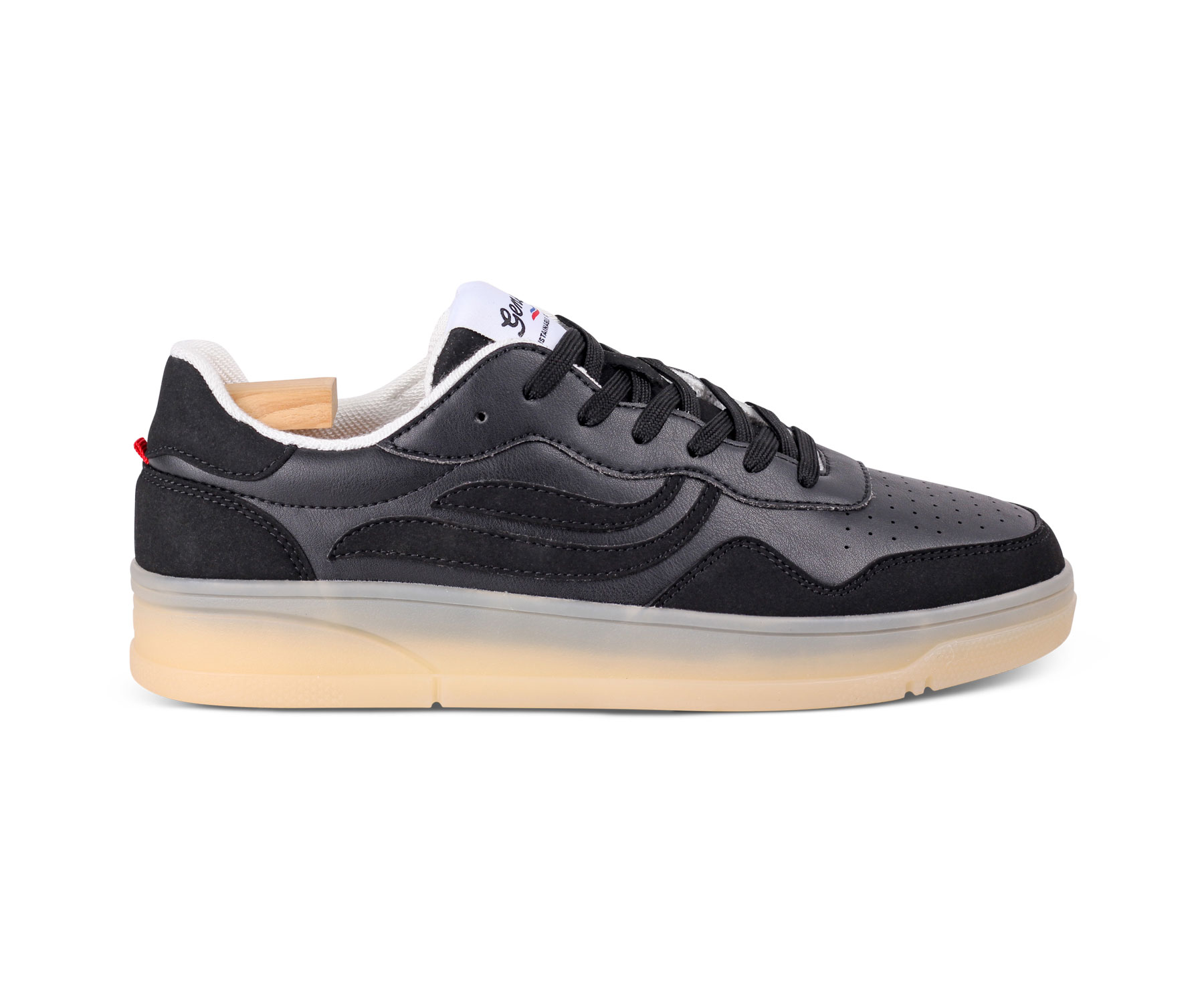 Auch die feinen Details liegen uns am Herzen: Schnürsenkel und Nähte werden aus 100% recycelten PET-Flaschen gefertigt. Das Innenfutter ist eine atmungsaktive Mischung aus Bambusfasern und recyceltem PET – für ein angenehmes Fußklima im Alltag. Die Außensohle besteht vollständig aus Hevea-Naturkautschuk – natürlich, robust und flexibel.