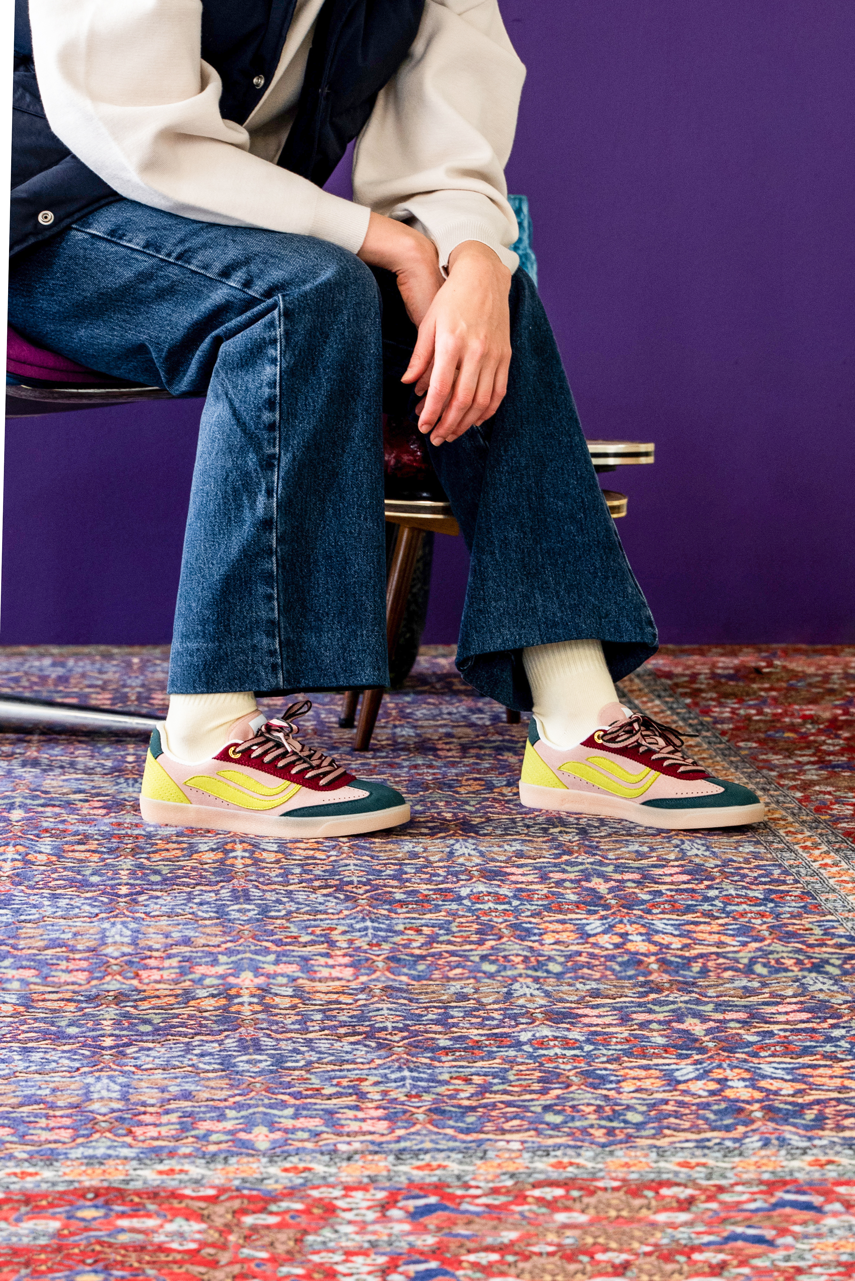 Obermaterial: BIOWAVE™ Vegan Suede aus Maisabfällen und Mesh aus 100% recycelten PET-Flaschen