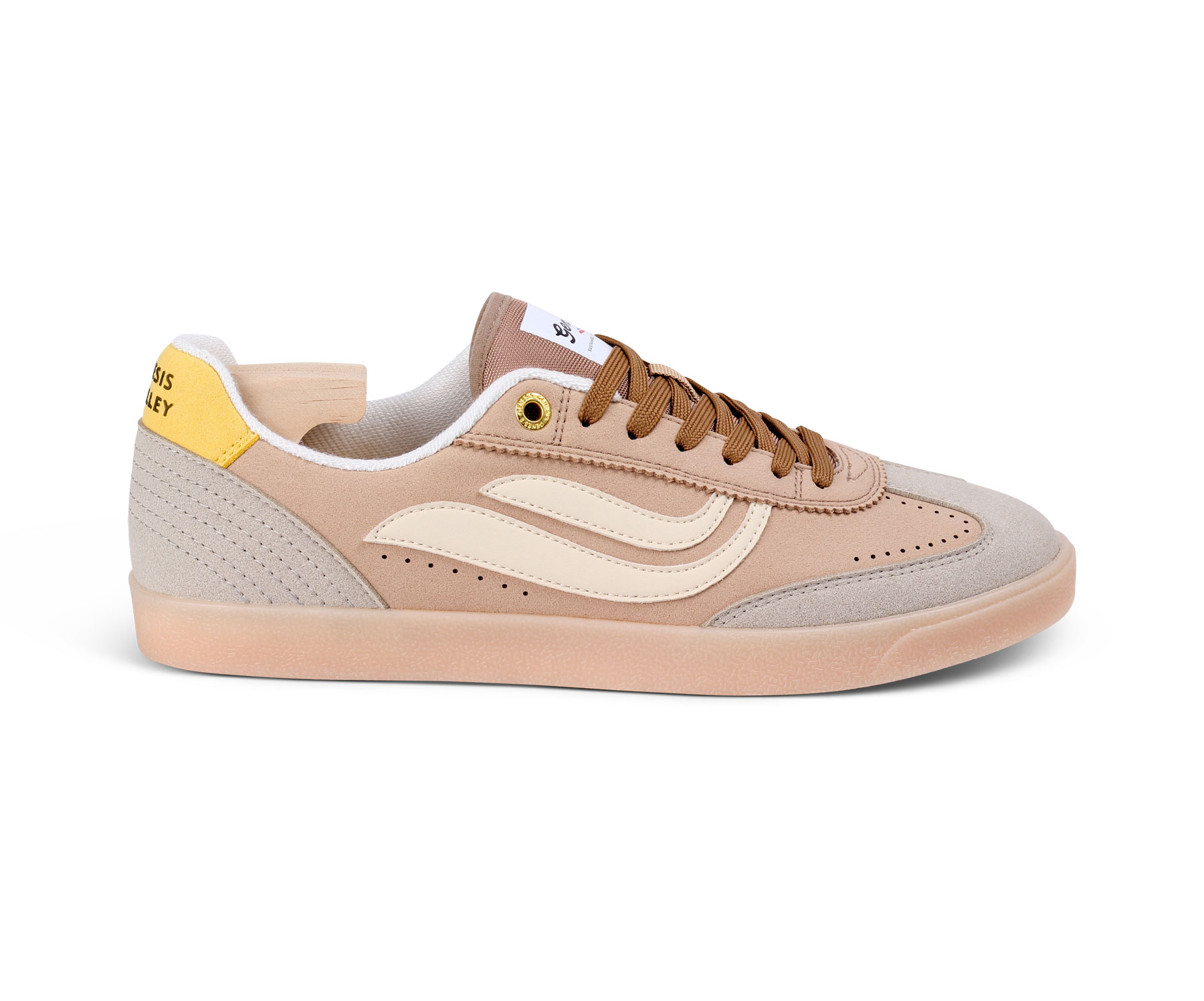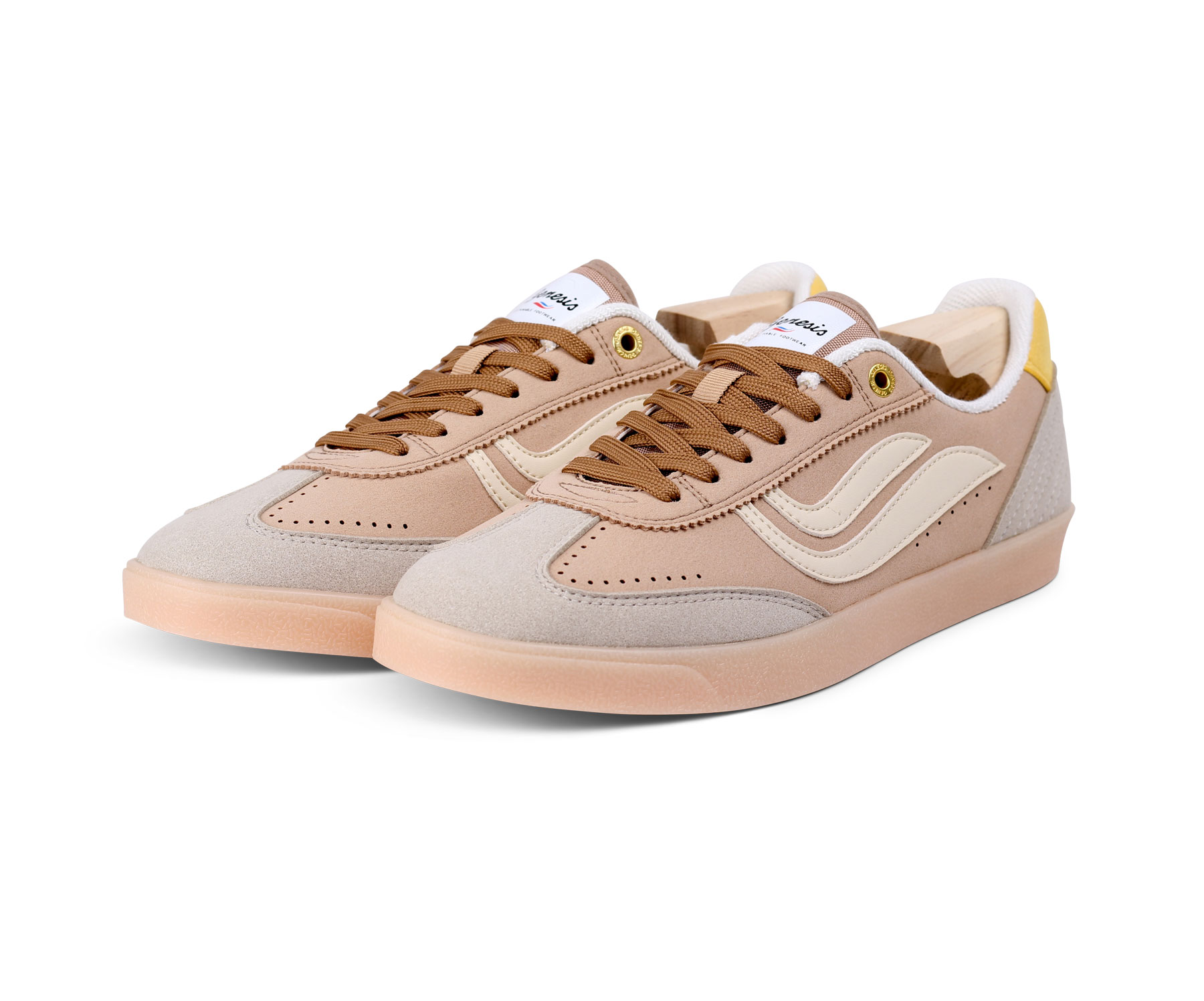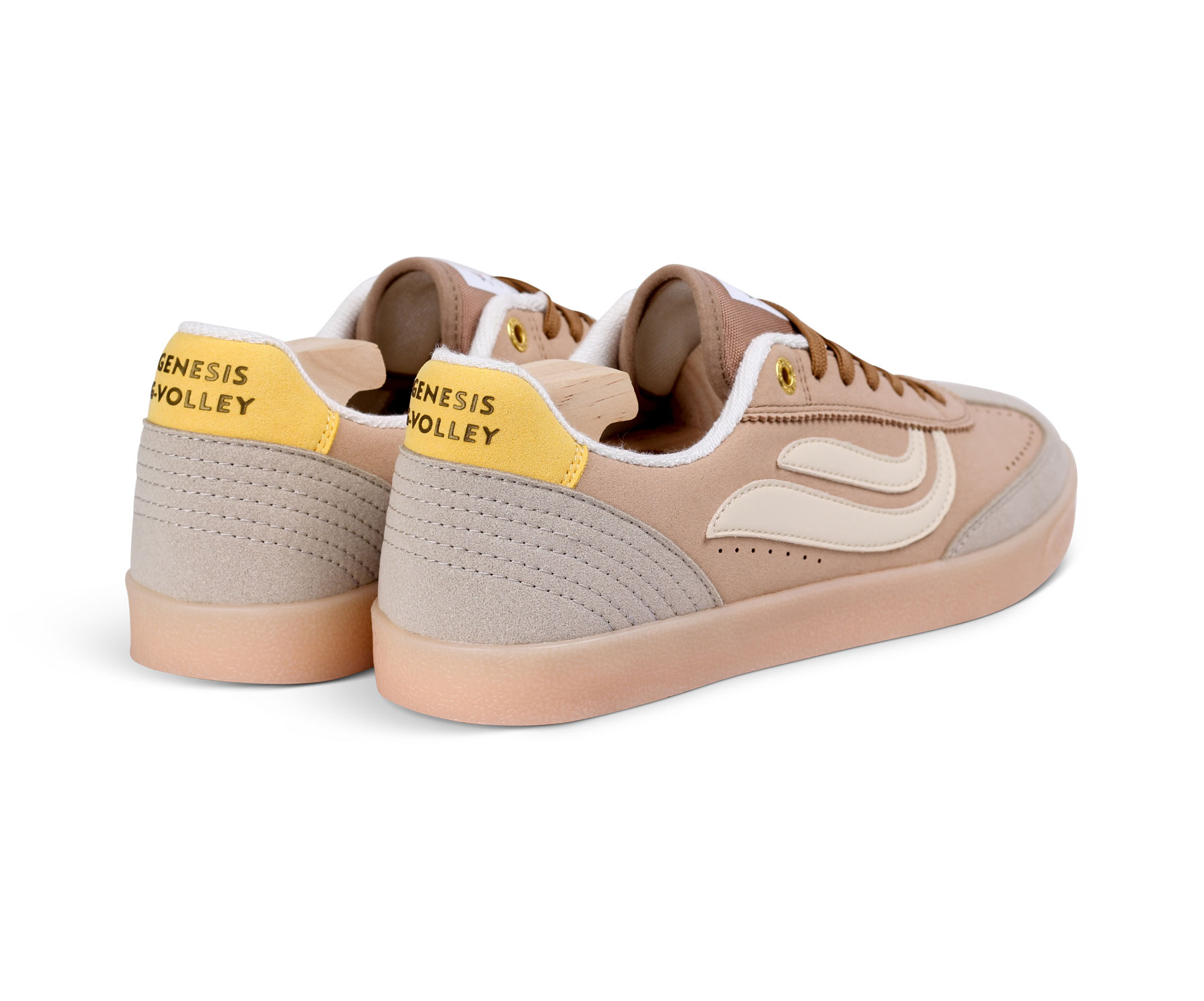 Der G-Volley Hairy bringt mit seiner markanten Textur und harmonischen Farbgebung frischen Charakter in die klassische G-Volley-Linie. Das Obermaterial kombiniert zwei Varianten unseres Cornwaste-Leders – veganes Glattleder und veganes Veloursleder aus Maisabfällen – und verleiht dem Schuh eine strukturierte, lebendige Oberfläche. Ergänzt wird das Design durch atmungsaktives Mesh aus 100 % recycelten PET-Flaschen, das für Leichtigkeit und Luftzirkulation sorgt.