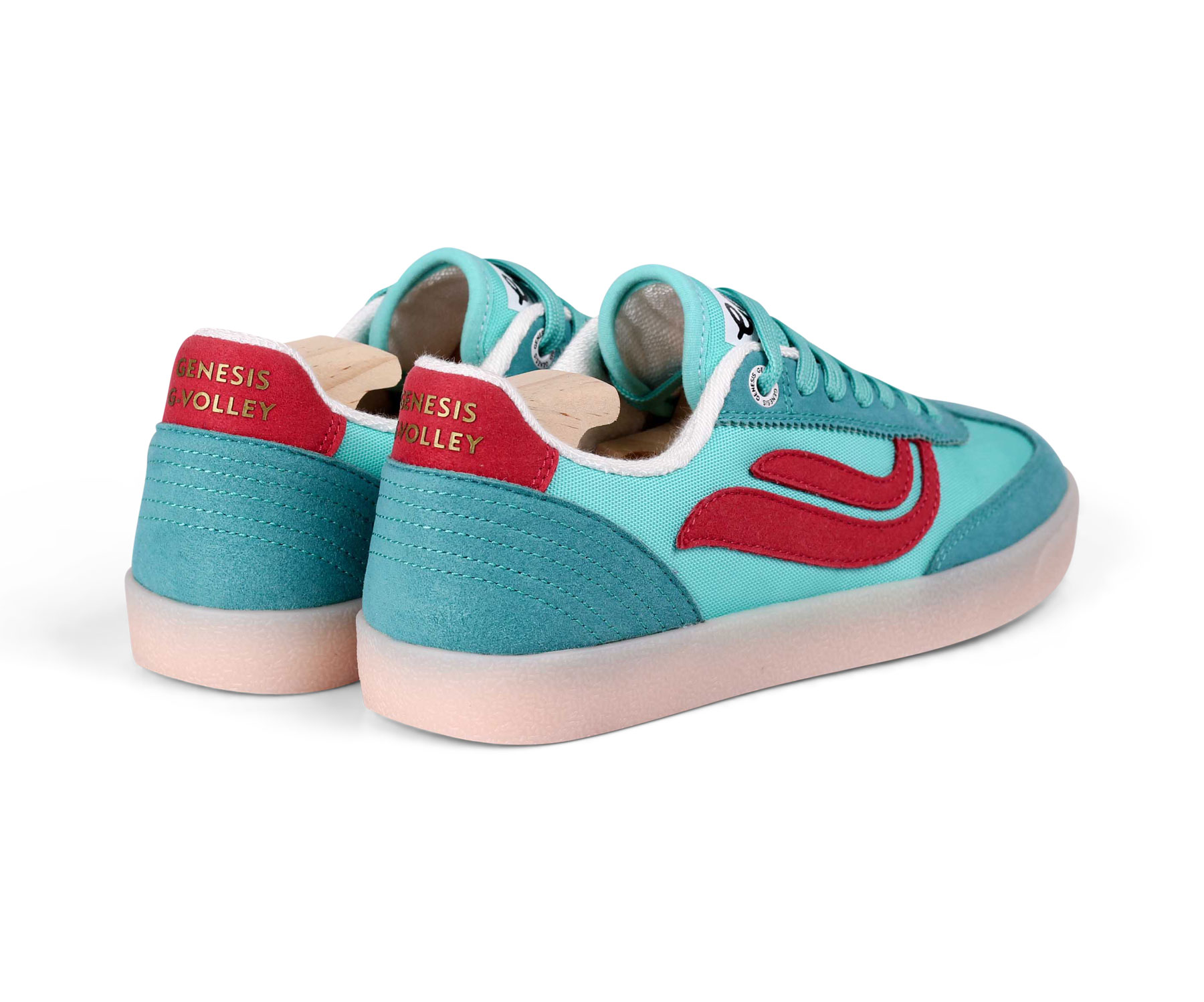 Der G-Volley Mesh kombiniert sportliche Funktion mit nachhaltigem Anspruch. Das Obermaterial besteht aus BIOWAVE™ Vegan Suede – einem innovativen Velourslederersatz aus Zuckerrohr und recyceltem PET – in Kombination mit einem atmungsaktiven Mesh aus 100% recycelten PET-Flaschen.