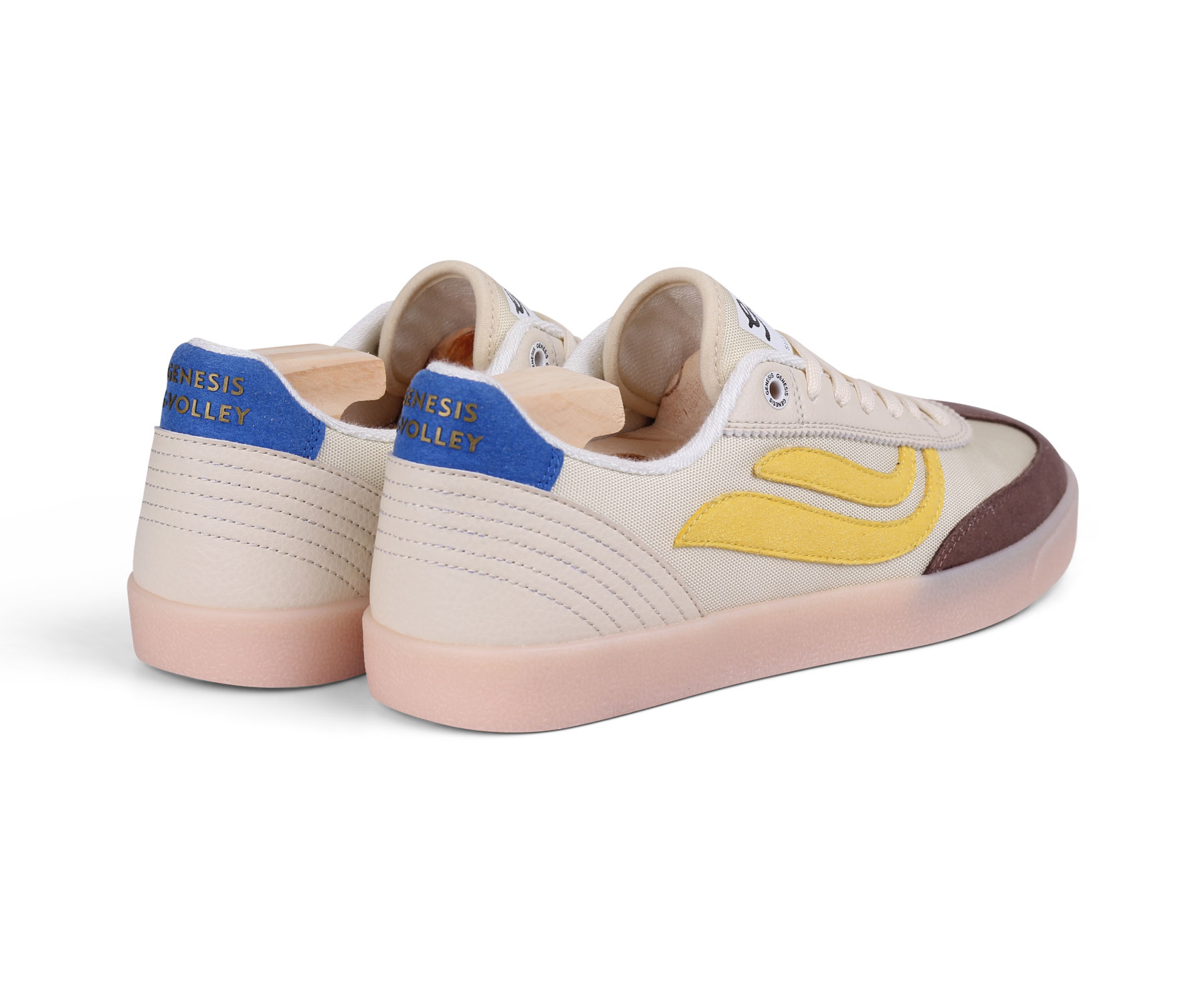 Der G-Volley Mesh kombiniert sportliche Funktion mit nachhaltigem Anspruch. Das Obermaterial besteht aus BIOWAVE™ Vegan Suede – einem innovativen Velourslederersatz aus Zuckerrohr und recyceltem PET – in Kombination mit einem atmungsaktiven Mesh aus 100% recycelten PET-Flaschen.