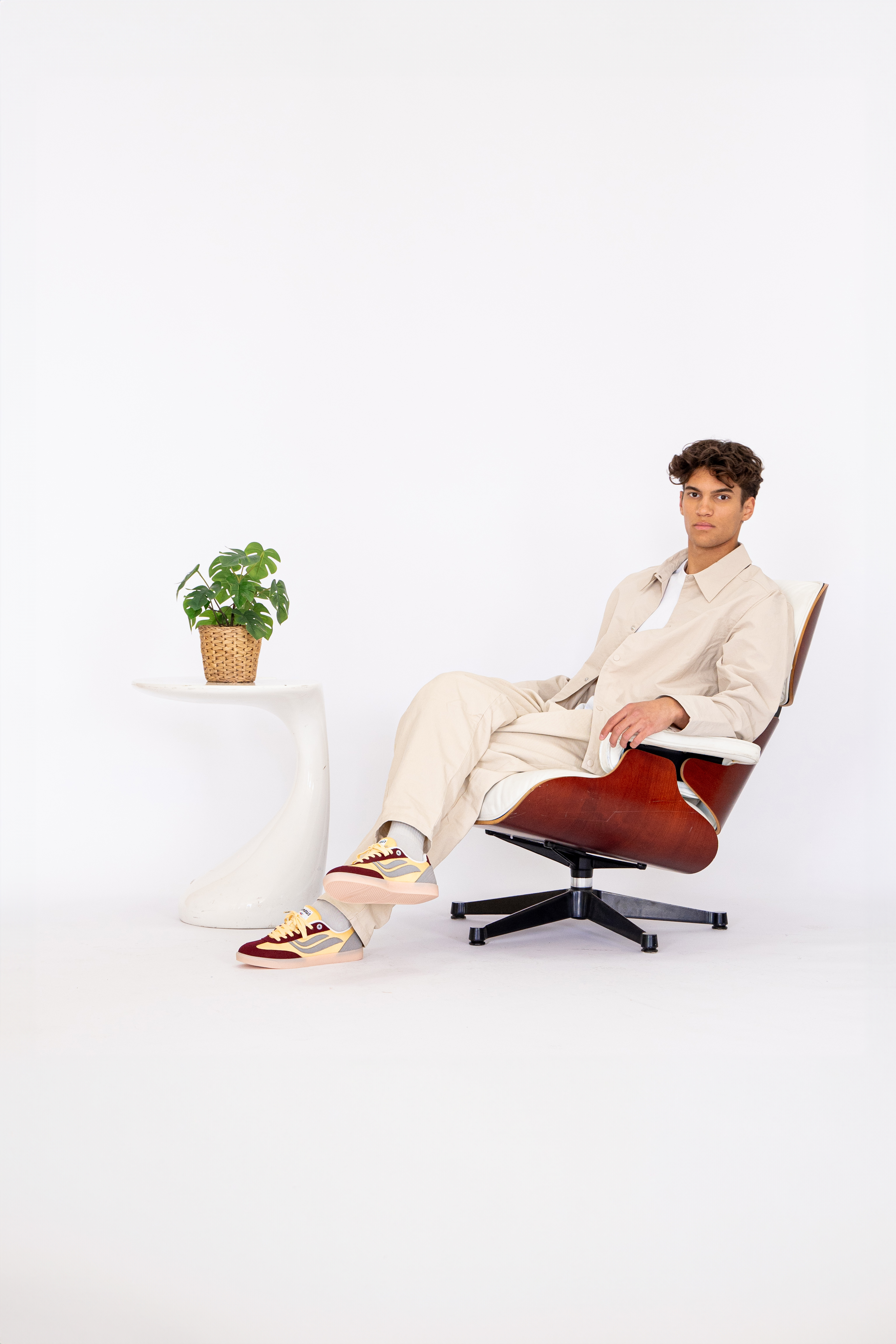 Obermaterial & Logo: BIOWAVE™ vegan Wildleder aus Zuckerrohr + recyceltem PET-Mesh aus 100 % recycelten PET-Flaschen