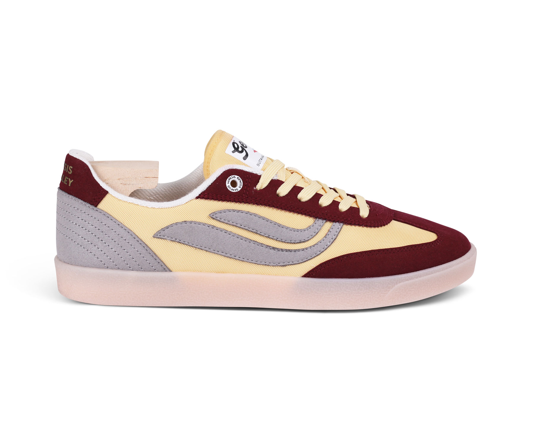 Der G-Volley Mesh kombiniert sportliche Funktion mit nachhaltigem Anspruch. Das Obermaterial besteht aus BIOWAVE™ Vegan Suede – einem innovativen Velourslederersatz aus Zuckerrohr und recyceltem PET – in Kombination mit einem atmungsaktiven Mesh aus 100% recycelten PET-Flaschen.